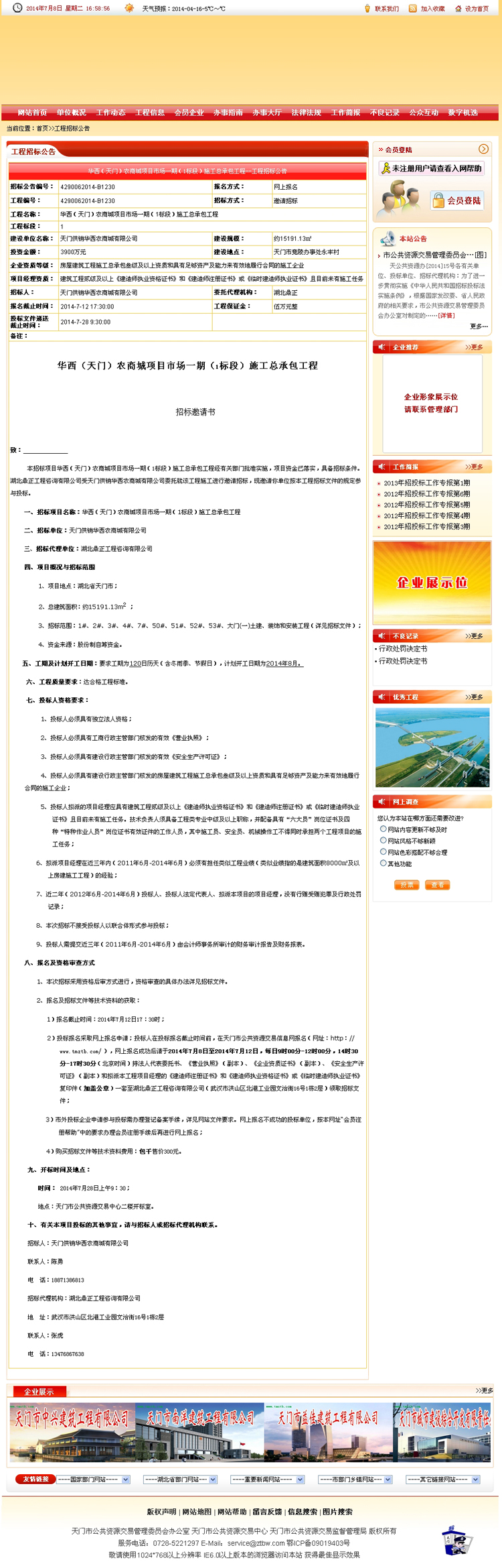 華西(天門)農商城項目市場一期(1標段)施工總承包工程