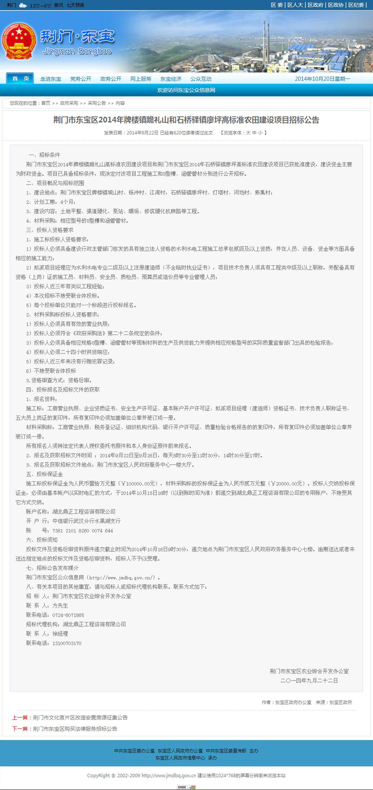 荊門(mén)市東寶區(qū)2014年牌樓鎮(zhèn)跪禮山和石橋驛鎮(zhèn)廖坪高標(biāo)準(zhǔn)農(nóng)田建設(shè)項(xiàng)目