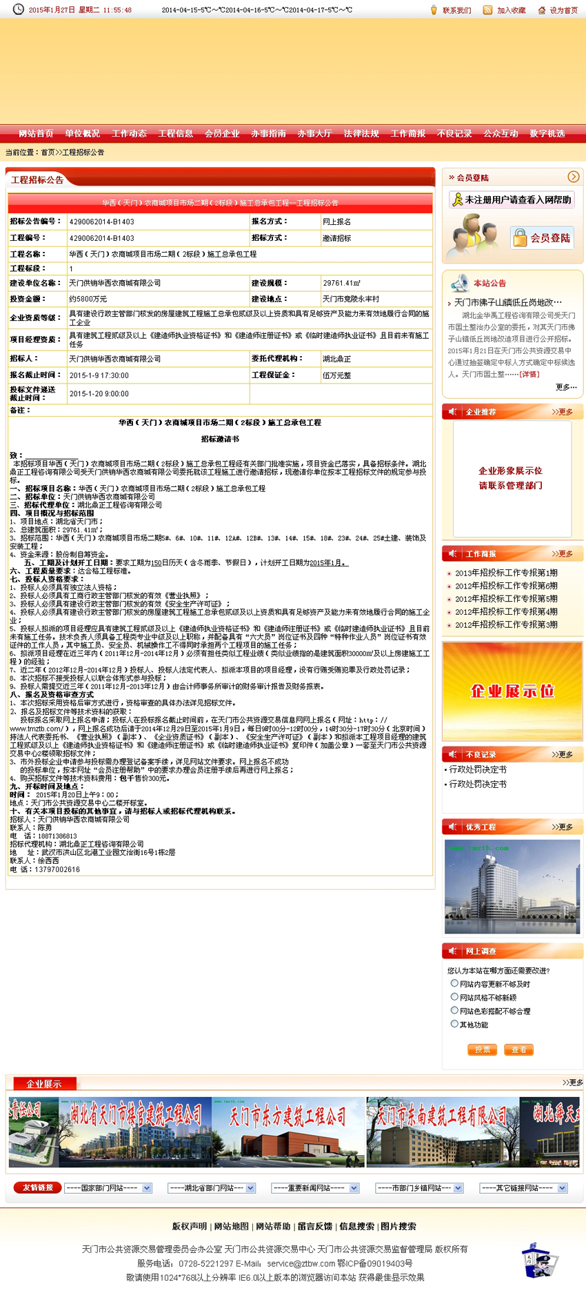 華西(天門)農商城項目市場二期(2標段)施工總承包工程