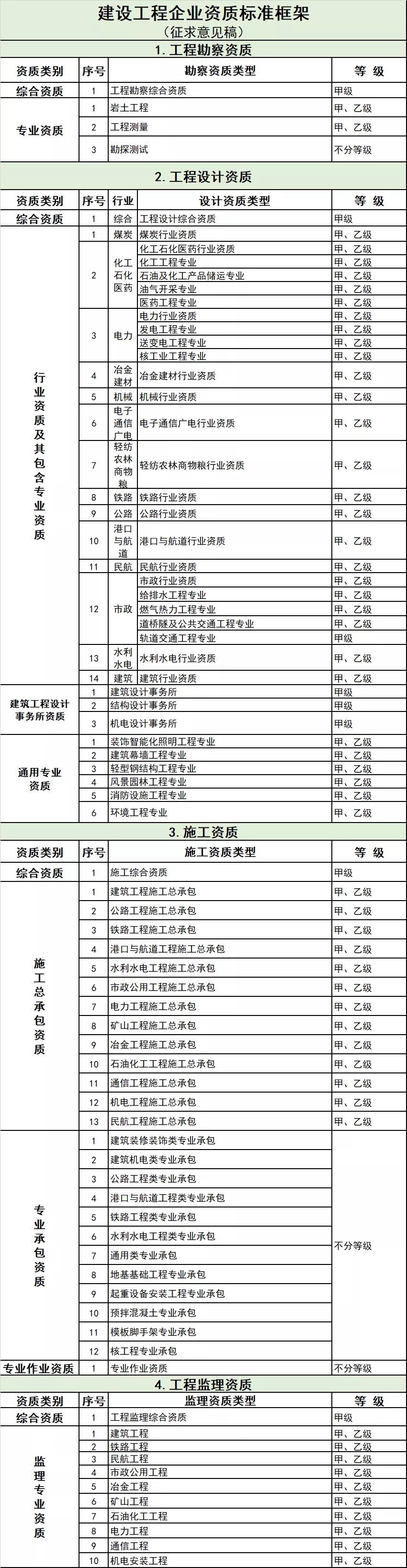 附:《建設工程企業資質標準框架(征求意見稿)》