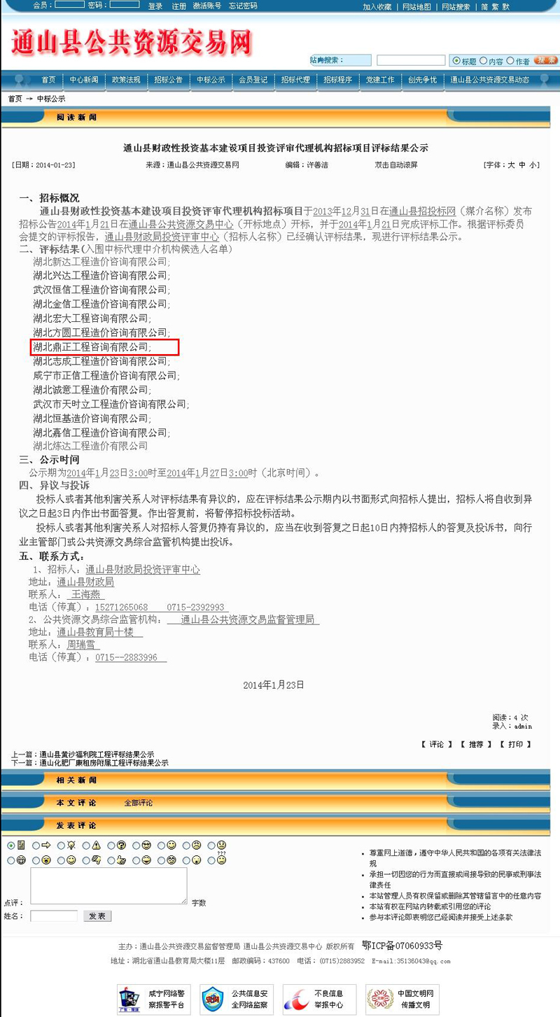 我公司入圍通山縣財政性投資基本建設項目投資評審代理機構候選名單