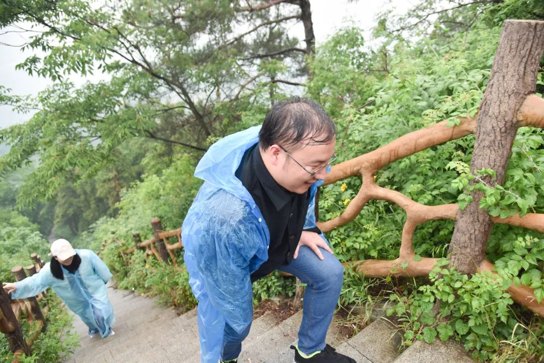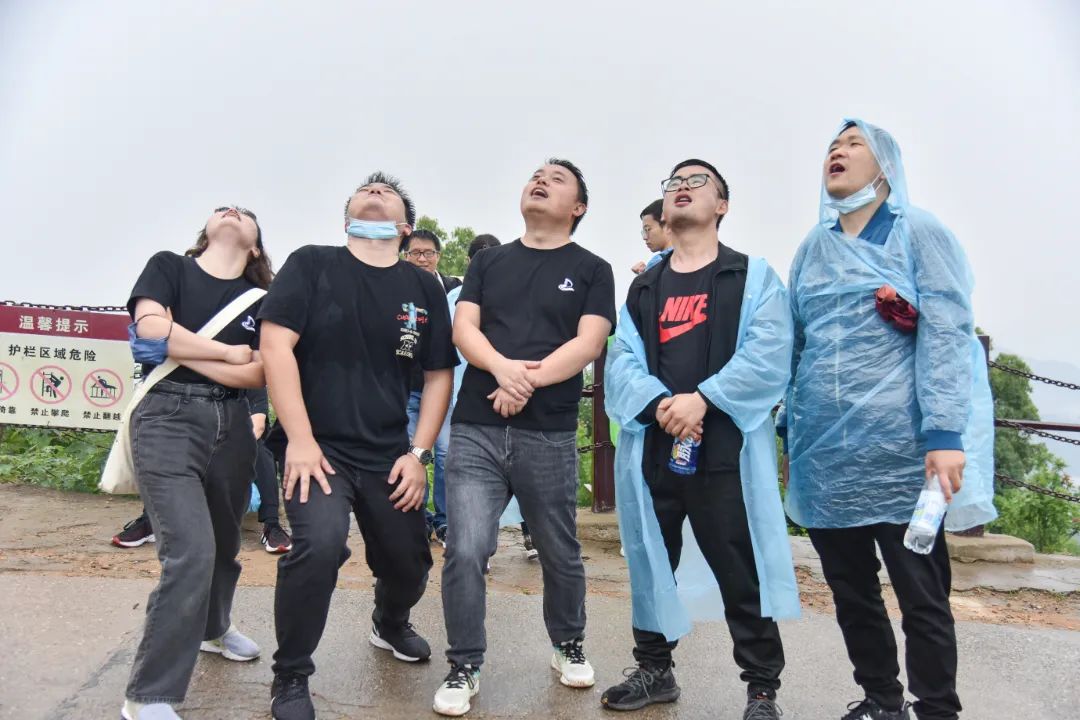 不一會(huì)兒的功夫,雨越下越大,一群舍不得下山的人還在努力拍照。