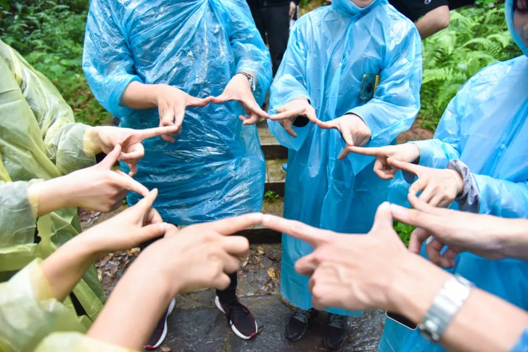 漸漸天空下起了小雨,我們也換上了五顏六色的雨衣。