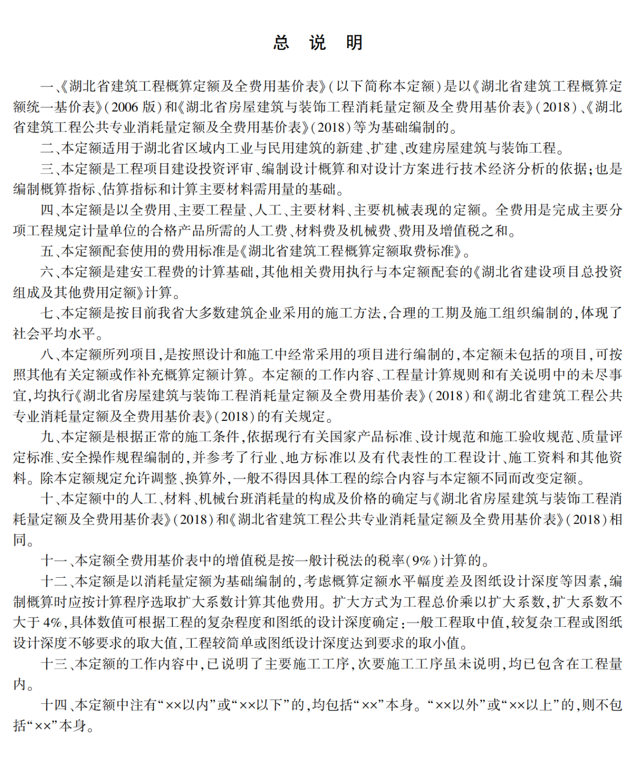一、《湖北省建設工程概算定額及全費用基價表》是我省工程項目建設投資評審、編制設計概算和對設計方案進行技術經濟分析的依據。《湖北省建設項目總投資組成及其他費用定額》是編制、評審和管理可行性研究投資估算和初步設計概算投資的依據。