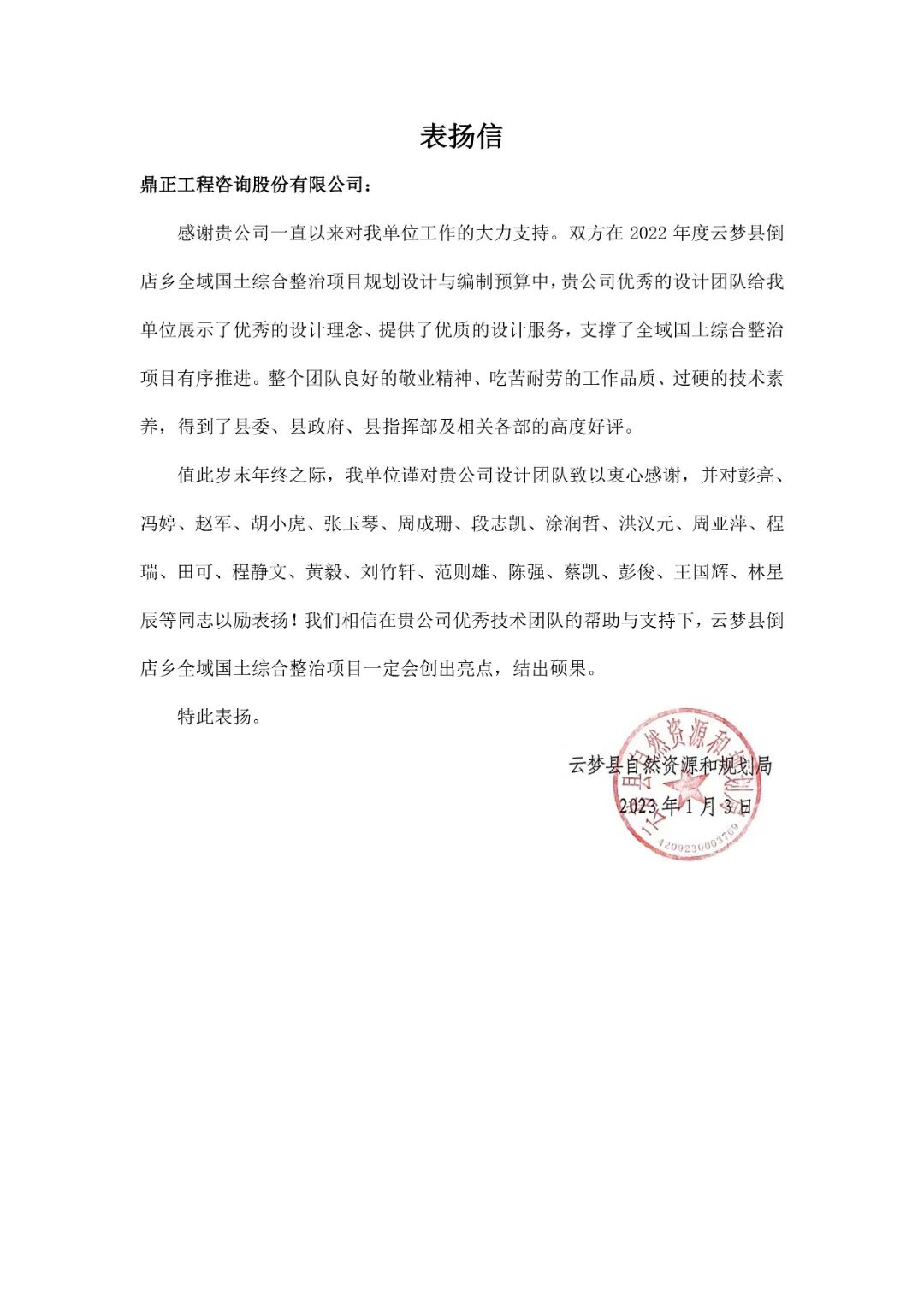 在2022年度云夢(mèng)縣倒店鄉(xiāng)全域國(guó)土綜合整治項(xiàng)目規(guī)劃設(shè)計(jì)與編制預(yù)算過(guò)程中,項(xiàng)目團(tuán)隊(duì)向業(yè)主展示了優(yōu)秀的設(shè)計(jì)理念,提供了優(yōu)質(zhì)的設(shè)計(jì)服務(wù),有條不紊地推進(jìn)項(xiàng)目進(jìn)行,高質(zhì)量地完成了項(xiàng)目相關(guān)報(bào)規(guī)報(bào)批節(jié)點(diǎn),獲得縣委、縣政府、縣指揮部及相關(guān)各部高度好評(píng)。本項(xiàng)目規(guī)格高、要求嚴(yán)格,在接到任務(wù)后,立即成立了項(xiàng)目組,多次深入現(xiàn)場(chǎng)調(diào)研,全力推動(dòng)項(xiàng)目設(shè)計(jì)咨詢工作的開(kāi)展,從項(xiàng)目建設(shè)必要性、建設(shè)規(guī)模、策劃及建設(shè)方案、工程實(shí)施計(jì)劃、投資估算及資金籌集、綜合效益等方面進(jìn)行了詳盡地分析研究,為項(xiàng)目前期工作的開(kāi)展發(fā)揮了咨詢智囊作用。在業(yè)主的大力支持下,項(xiàng)目組從立項(xiàng)到實(shí)施,克服了諸多困難,展現(xiàn)了優(yōu)秀的設(shè)計(jì)咨詢能力和資源整合能力,其敬業(yè)態(tài)度和專(zhuān)業(yè)素養(yǎng)給業(yè)主留下深刻印象,并獲得業(yè)主單位給予一致好評(píng)。