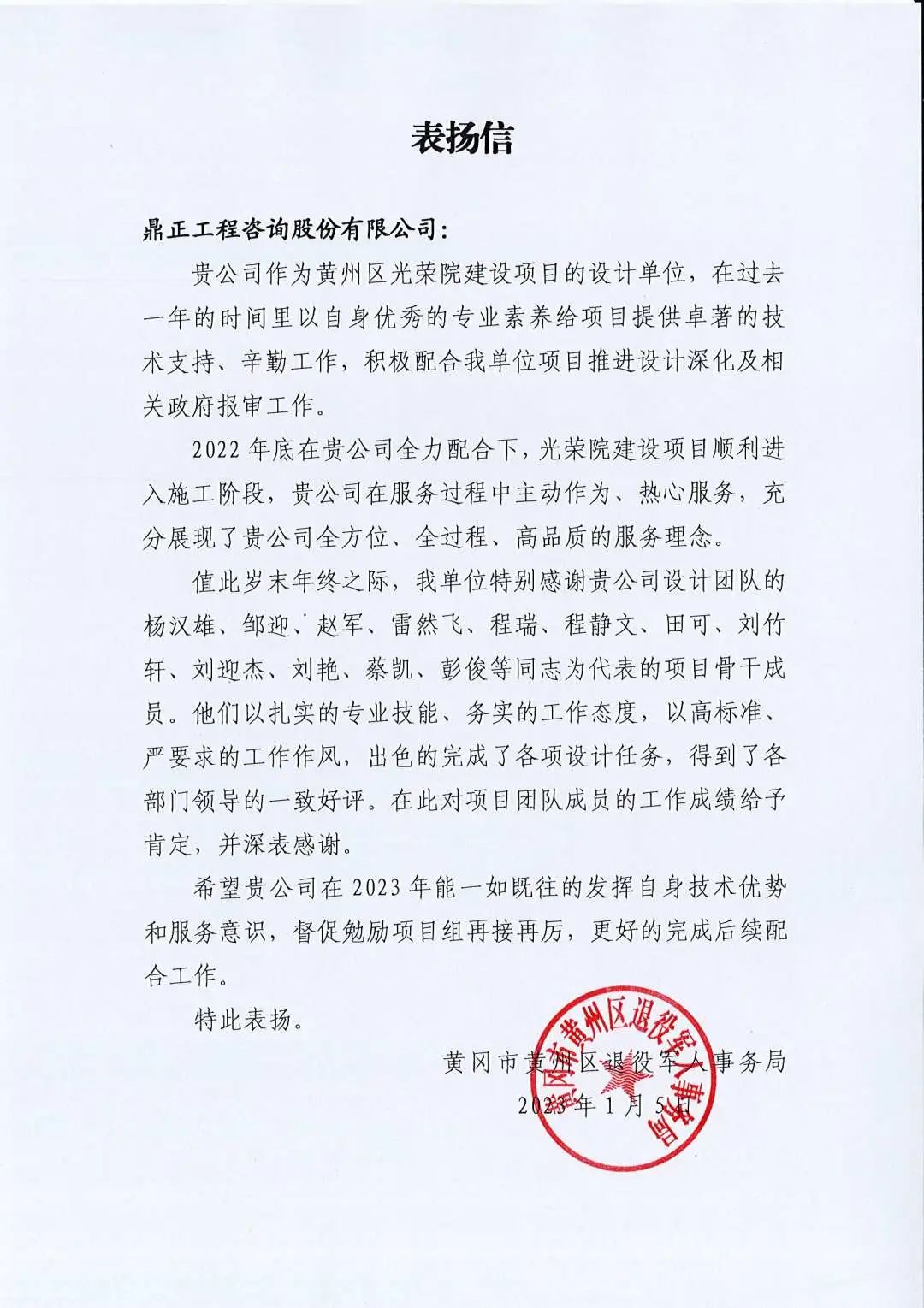 寒冬歲末之際,陸續(xù)接收到多封表?yè)P(yáng)信、感謝信,一個(gè)個(gè)贊許,一句句肯定,是鼎正成績(jī)單上最好的評(píng)語(yǔ),感謝每一位業(yè)主的認(rèn)可和督促,因?yàn)橛心銈?,才能讓我們成為更好的自己?br />