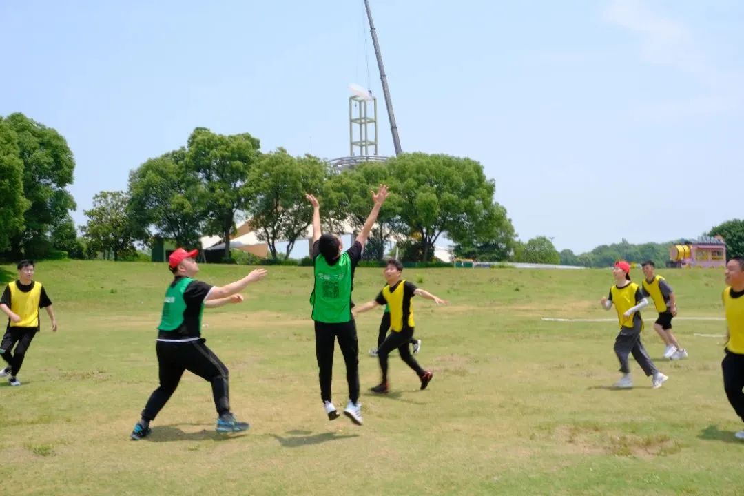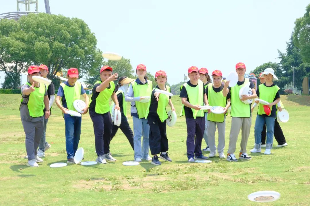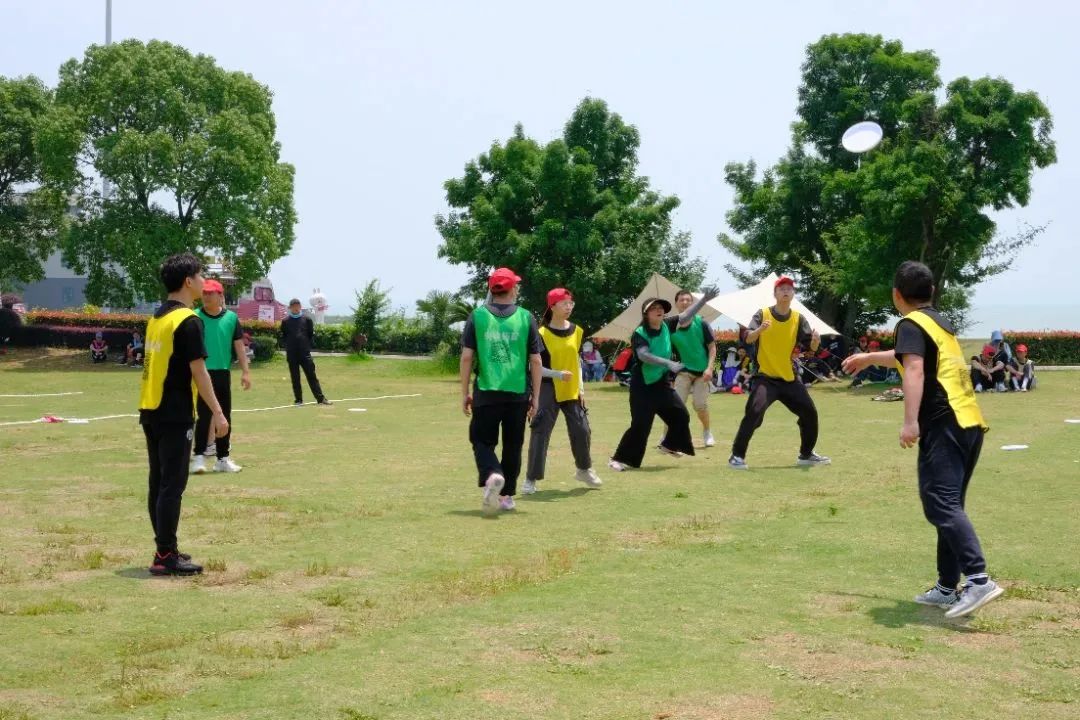 在教練的帶領下,大家來到戶外場地開始實地開展飛盤競賽。飛盤練習場上,有迅速上手并漸入佳境的小伙伴,有互相鼓勵對方說“沒關系,再試一次” 的組隊搭檔,也有時不時傳來歡聲笑語的同事