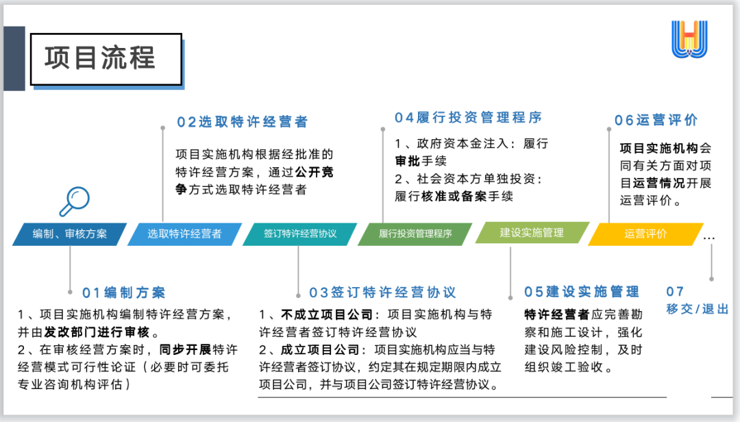 4、地方各級人民政府應授權有關行業(yè)主管部門、事業(yè)單位作為項目實施機構,完成相應的方案編制、特許經(jīng)營者選擇等流程。