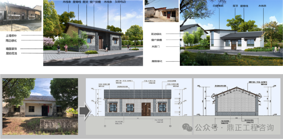 在建筑美化方面,通過建筑整體色彩協調、立面美化、增加裝飾、宅前屋后綠化等措施,實現對建筑的整改。其中對于歷史建筑風貌整治,要在不改變歷史建筑原狀的原則下,對民居進行部分修繕。同時整治歷史建筑的周圍環境,提升整體環境質量。