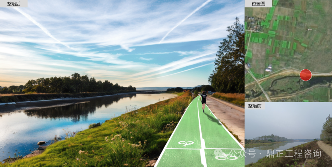 對雙河村漂水河駁岸進行整治,對水系進行清淤(恢復河床)、清障(疏通河道)、清理垃圾(清潔河道)、保持河道流暢干凈。對現狀岸邊植物雜灌木清除梳理,局部可增補色葉植物,豐富季相變化。增加濱水休閑步道,打造濱水開放空間。