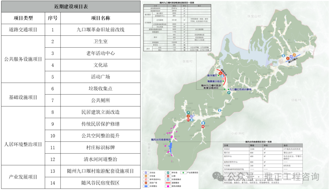 如九口堰村近期主要建設內容為基礎設施與公共服務設施完善、人居環境整治,以及部分池塘整治和產業發展項目。