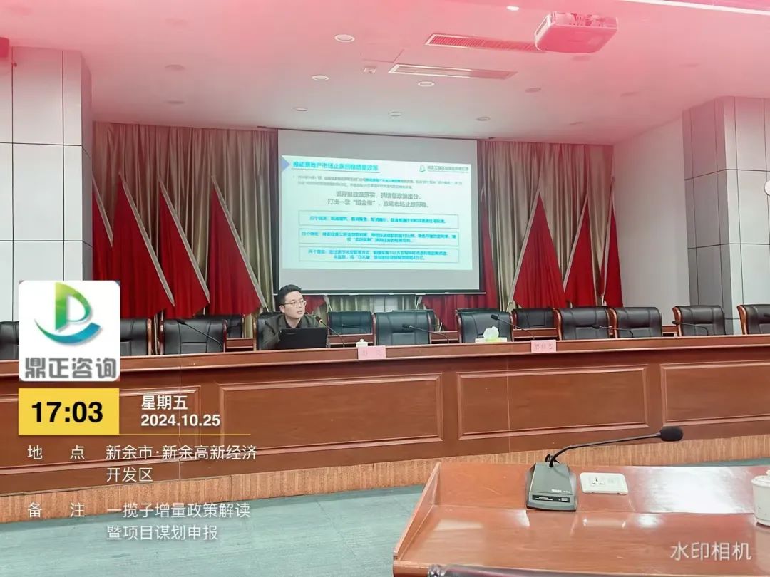 自9月下旬以來,國務院等多部門密集發布了一攬子增量政策,并引發了社會各界的廣泛關注。為搶抓增量政策窗口期,提升地方政府項目謀劃儲備質量和項目謀劃水平,精準擴大有效投資。10月25日,鼎正副總經理彭亮受邀為新余高新區政府作《一攬子增量政策解讀暨項目謀劃申報》的專題培訓。