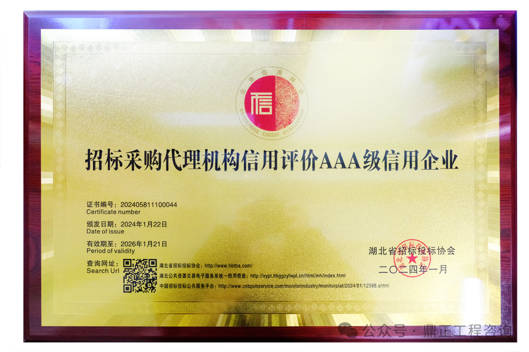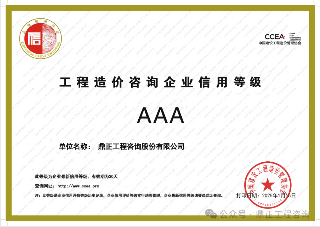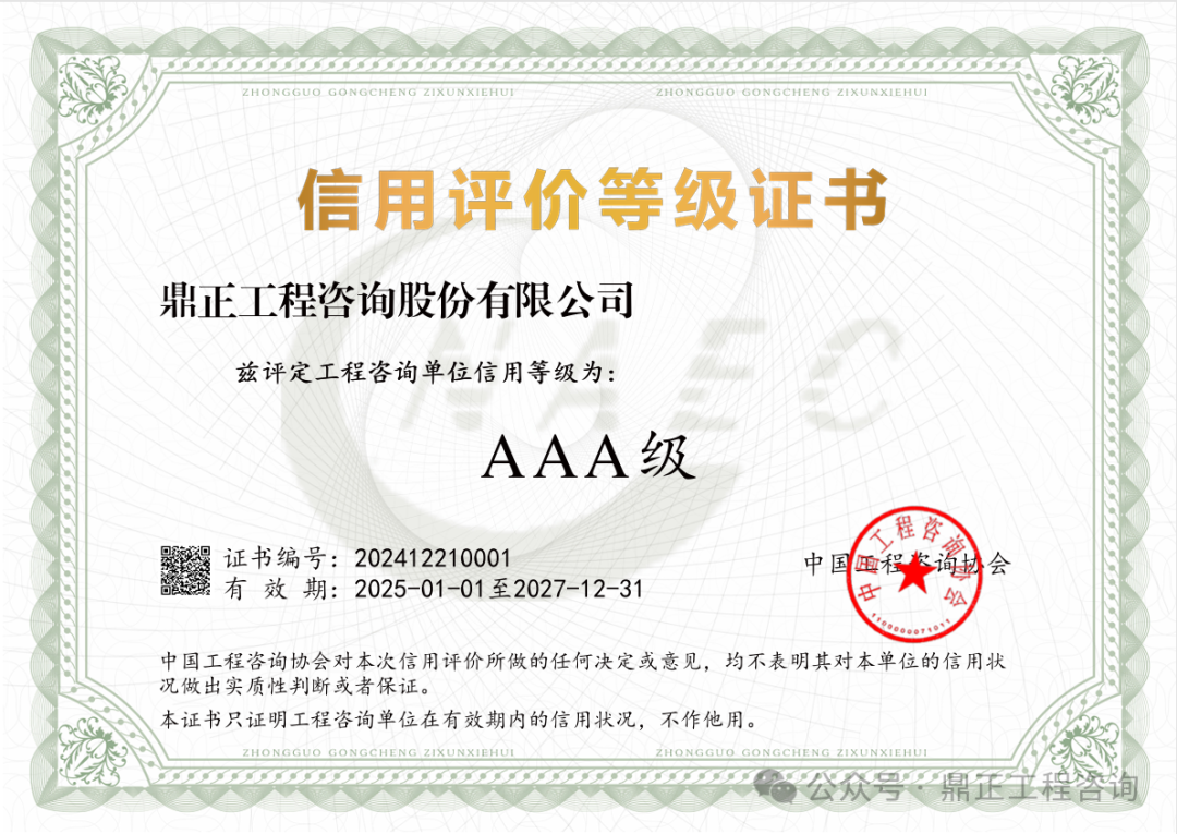 近日,中國工程咨詢協會發布了2024年度工程咨詢單位信用評價公告,鼎正憑借優異的誠信建設和信用管理能力,榮獲“AAA級信用等級”評價