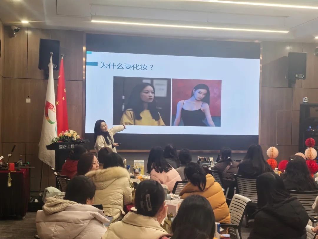 3月6日下午,鼎正為每一位女神精心準備了一場專屬儀式——“從容出發,妝點自己”主題美妝課堂。在專業美妝老師的指導下,她們暫時放下手中的工作,拿起彩妝畫筆,開始勾勒屬于自己的高光時刻。她們在工程圖紙與化妝刷之間切換,尋找更好的自己,用美麗綻放詮釋事業與美的雙重進階。