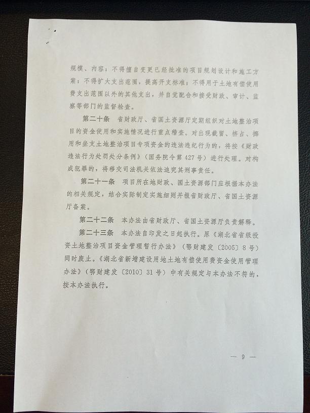湖北省土地整治項目資金管理暫行辦法