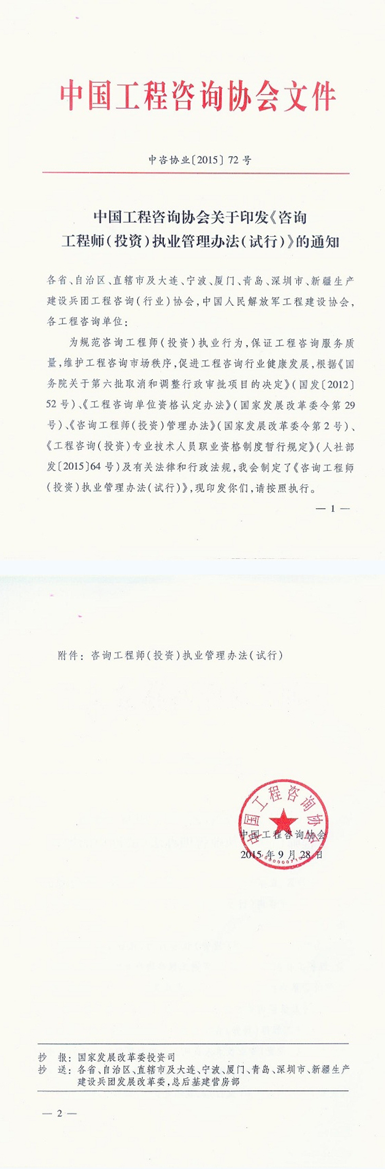 第四條 中國(guó)工程咨詢協(xié)會(huì)(以下簡(jiǎn)稱“中咨協(xié)會(huì)”)是全國(guó)工程咨詢行業(yè)的自律組織,負(fù)責(zé)管理咨詢工程師(投資)及工程咨詢單位與咨詢工程師(投資)相關(guān)事項(xiàng)的執(zhí)業(yè)行為。